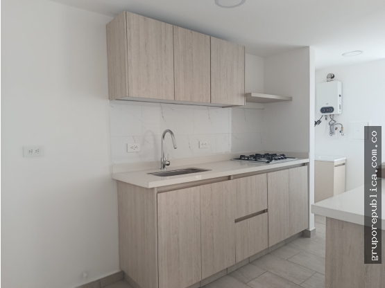 El apartaestudio cuenta con un diseño contemporáneo de espacios abiertos, integrando sala, comedor y cocina en un ambiente funcional. Dispone de cocina integral con barra estilo americano, optimizando el uso del espacio.